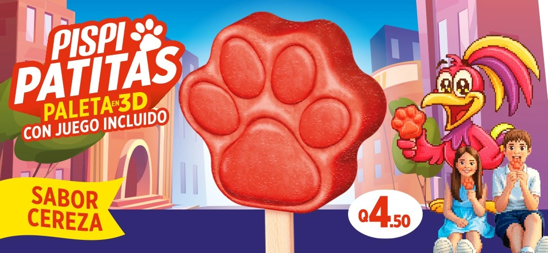 Helado de agua sabor natural a fresa con relleno cremoso sabor artificial a leche condensada.